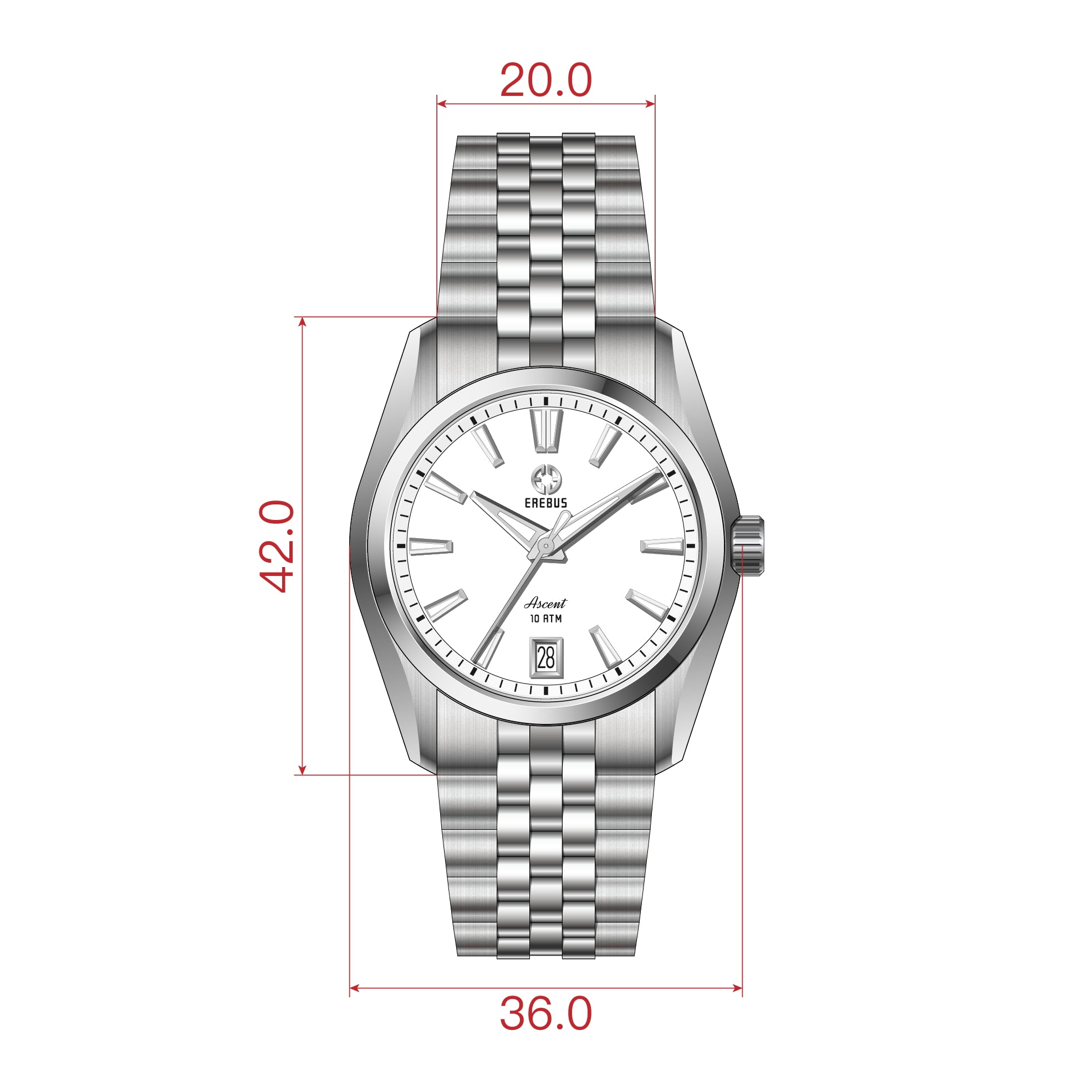 The 36mm Ascent has all the elegance and sophistication of the 39mm, but its smaller diameter and compact lug-to-lug measurement, allows the watch to fit comfortably on smaller wrists.