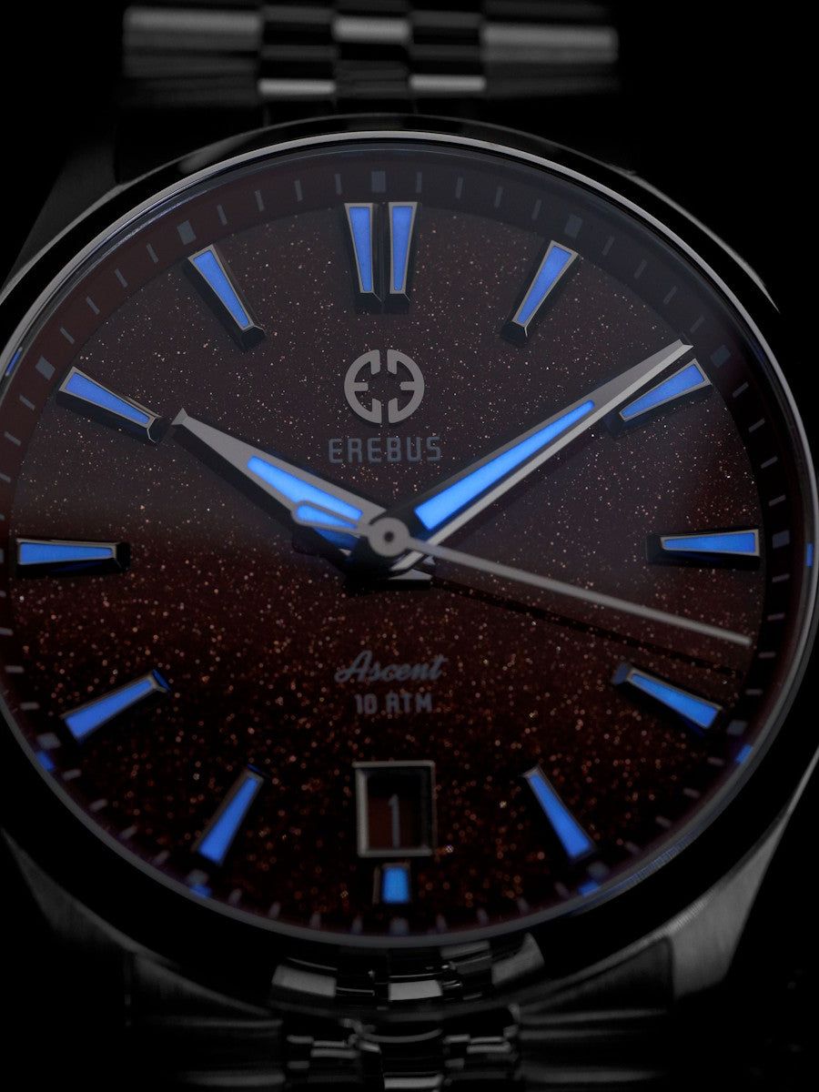 Erebus’s first Go Anywhere, Do Anything (GADA) sports watch is more than just a pretty face. Designed to be worn on any occasion, whether at the office, on a night out, a hike, or even a swim, the Ascent always looks like it is worth thousands more than its asking price.