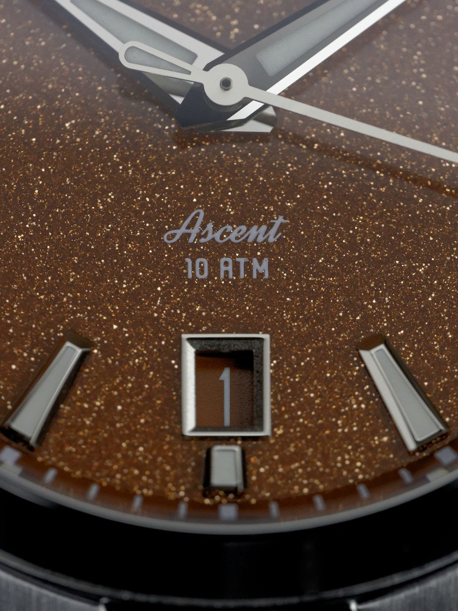 Running a Japanese-made Miyota 9015 movement means that the Ascent sports a wrist hugging slimline case profile and enjoys a satisfyingly smooth sweep of its needle-sharp second hand.