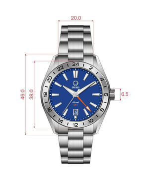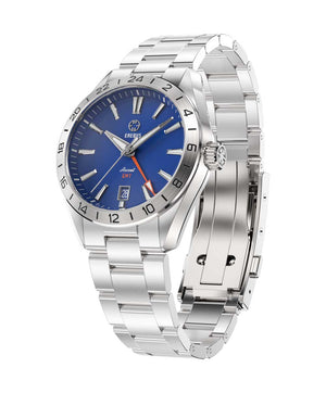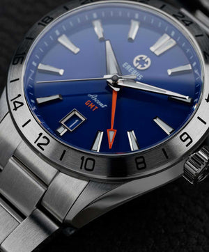 The Erebus Ascent GMT is a refined yet sporty addition to the Ascent lineup, elevating the collection through subtle but impactful enhancements. Powered by the Miyota 9075 traveler GMT movement, it offers true GMT functionality—allowing you to adjust the local hour hand independently without hacking the movement when crossing time zones.