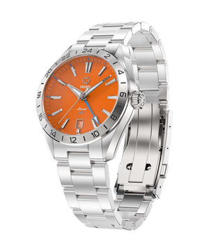 The Erebus Ascent GMT is a refined yet sporty addition to the Ascent lineup, elevating the collection through subtle but impactful enhancements. Powered by the Miyota 9075 traveler GMT movement, it offers true GMT functionality—allowing you to adjust the local hour hand independently without hacking the movement when crossing time zones.
