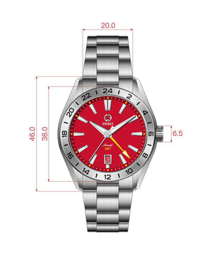 Powered by the Miyota 9075 traveler GMT movement, it offers true GMT functionality—allowing you to adjust the local hour hand independently without hacking the movement when crossing time zones.