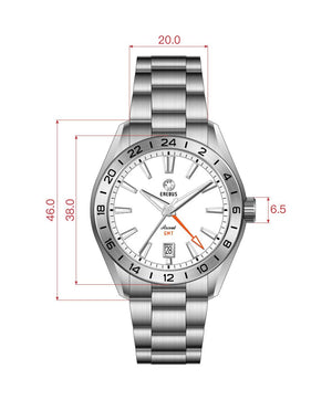 The Erebus Ascent GMT is a refined yet sporty addition to the Ascent lineup, elevating the collection through subtle but impactful enhancements. Powered by the Miyota 9075 traveler GMT movement, it offers true GMT functionality—allowing you to adjust the local hour hand independently without hacking the movement when crossing time zones.