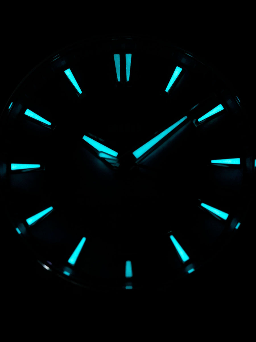 - LUME: BGW9 Super-LumiNova® on Hands, Indices and Bezel Markers