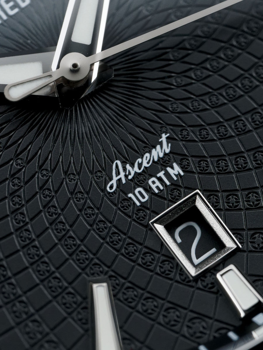 The 41mm Ascent has all the elegance and sophistication of the 39mm, but with even more wrist presence due to the larger diameter dimension. Full details below...