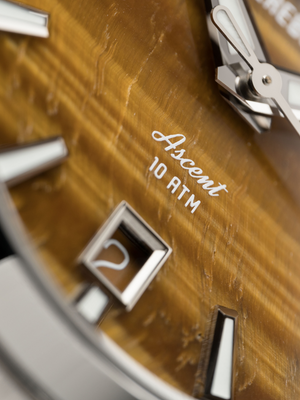 Running a Japanese-made Miyota 9015 movement means that the Ascent sports a wrist hugging slimline case profile and enjoys a satisfyingly smooth sweep of its needle-sharp second hand.
