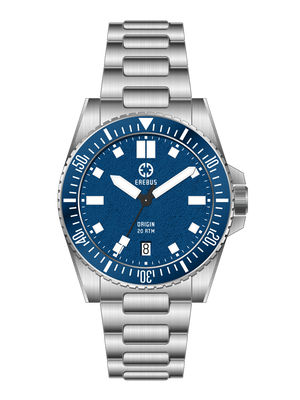 The outstanding curved H-link bracelet feature quick release springbars so you can swap between all available strap options entirely tool free. Remodelled specifically for the 38, the new bracelet features a smaller adjustable clasp giving approximately 10mm of sizing flexibility, and a chamfer to its bottom edge to enhance comfort and wearability. High quality military-style straps, silicone straps, and FKM rubber straps are available to compliment your Origin 38. They all feature Erebus branding on their fully brushed 316l stainless steel hardware.