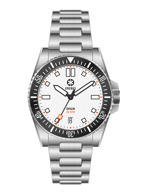 The outstanding curved H-link bracelet feature quick release springbars so you can swap between all available strap options entirely tool free. Remodelled specifically for the 38, the new bracelet features a smaller adjustable clasp giving approximately 10mm of sizing flexibility, and a chamfer to its bottom edge to enhance comfort and wearability. High quality military-style straps, silicone straps, and FKM rubber straps are available to compliment your Origin 38. They all feature Erebus branding on their fully brushed 316l stainless steel hardware.