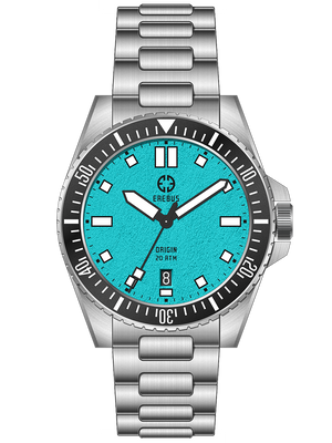 The precision made 120-click bezel can time your dive or your boiling egg. 20 ATM of water resistance means the Origin 41 is ready for anything. The fully graded fully brushed bezel insert is also fully lumed, of course. The guarded 6.5mm crown is a pleasure to use and provides ample grip even with wet or gloved hands.