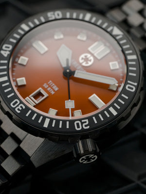 Despite its hardcore specs, the Titan doesn’t skimp on refinement. With a two-piece applied logo and lumed applied indices, this incredibly capable watch looks strikingly handsome on wrist.