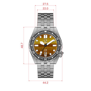 Designed to withstand the depths with 500m water resistance, the Titan comes with Viton® gaskets and a helium escape valve to complete its genuine deep diving credentials.