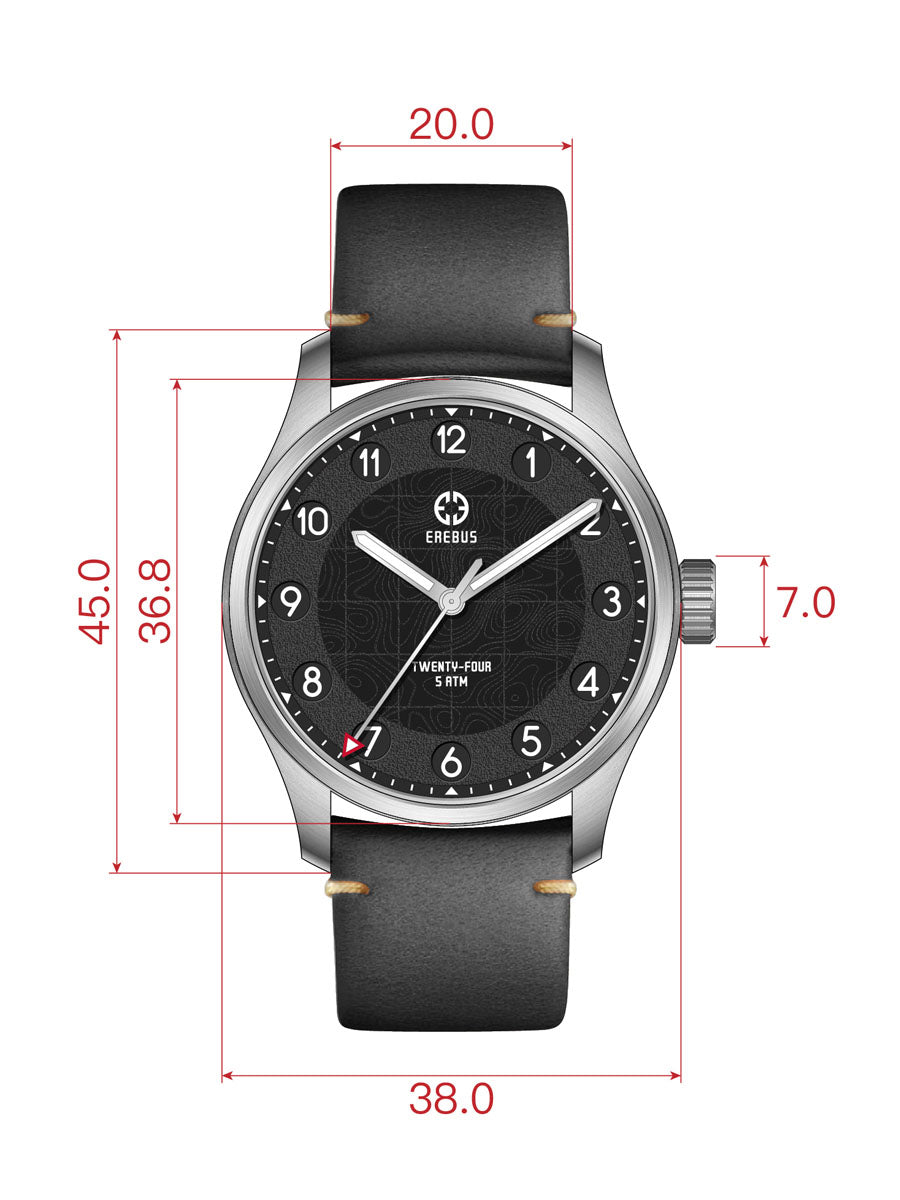 - INCLUSIONS: Erebus branded watch case, polishing cloth and warranty card