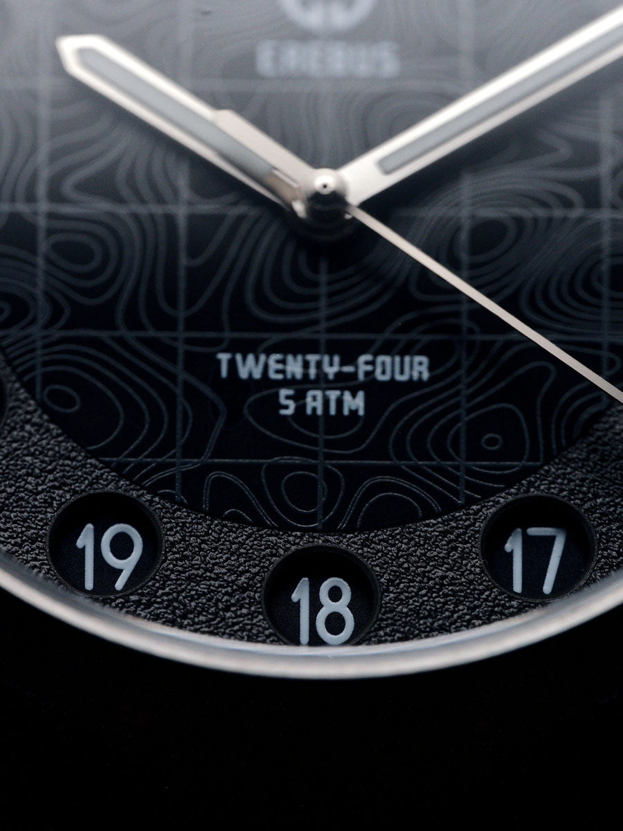 The Erebus Twenty-Four introduces something rarely seen in modern watchmaking; a true 24-hour time display housed within a clean, highly legible field watch design.