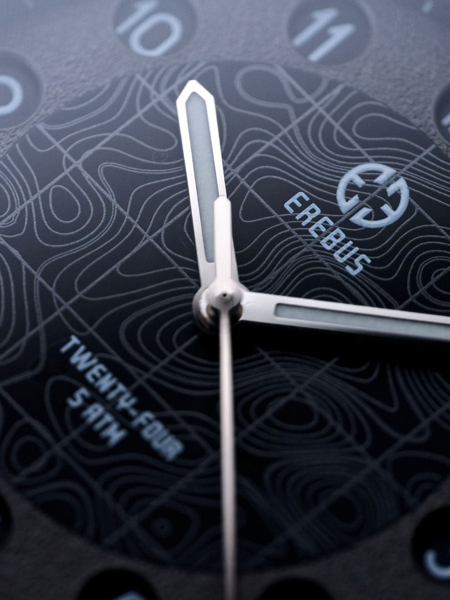 As with every Erebus release, the specifications are uncompromising. A flat sapphire crystal with multi-layer anti-reflective coating ensures exceptional clarity, while BGW9 Super-LumiNova on the hands and markers guarantees legibility after dark.