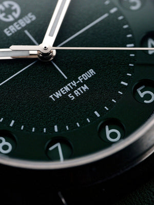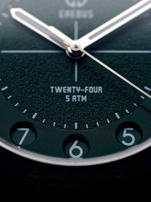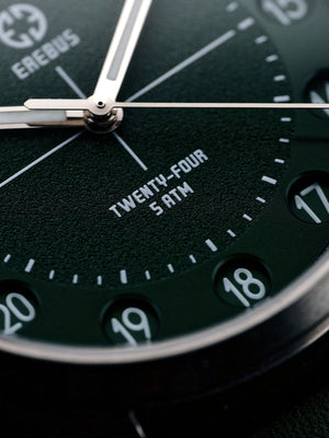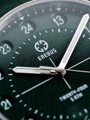 The Erebus Twenty-Four introduces something rarely seen in modern watchmaking; a true 24-hour time display housed within a clean, highly legible field watch design.