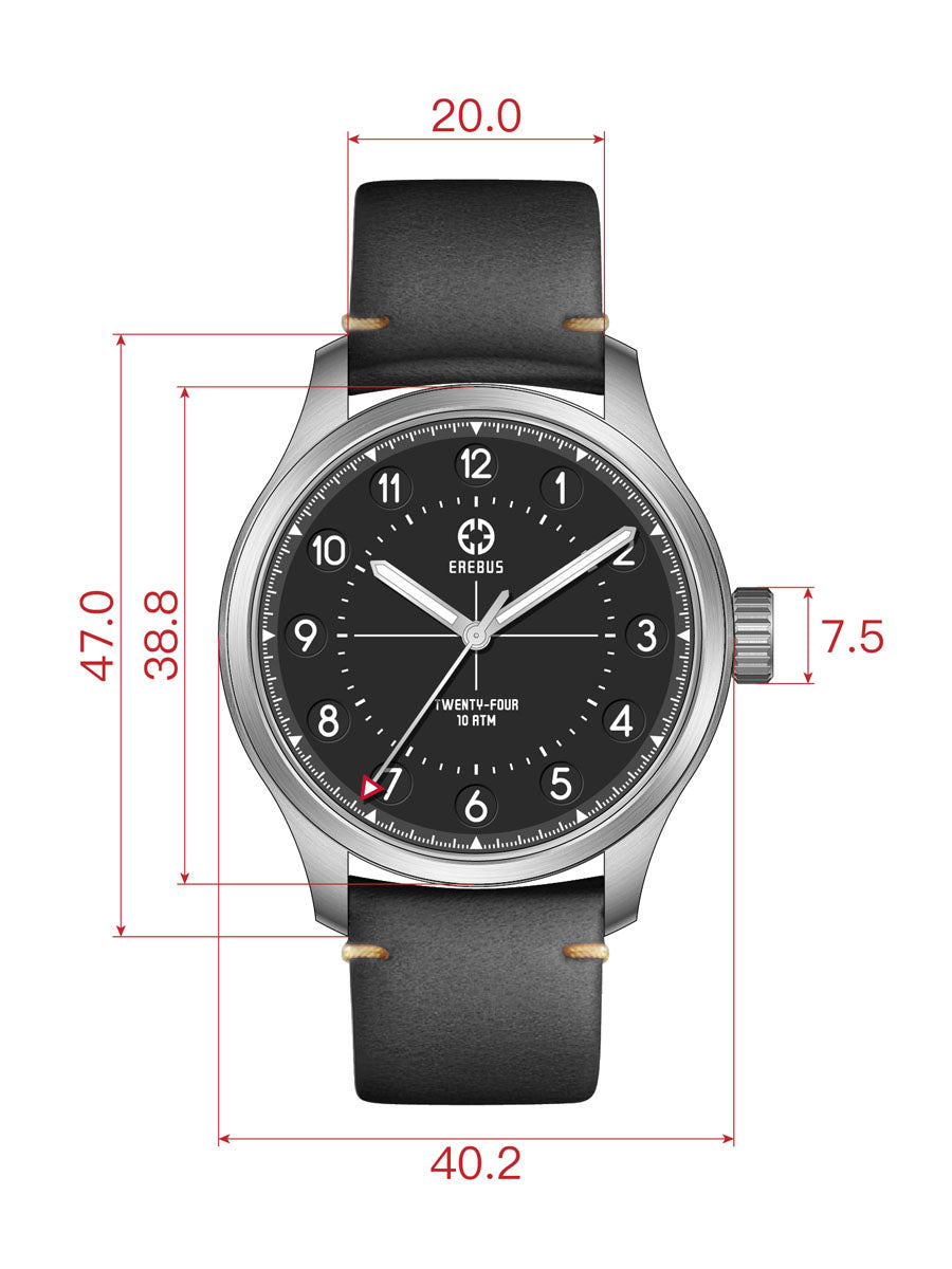 The Twenty-Four features flat sapphire crystal with anti-reflective undercoating and BGW9 Super-LumiNova for excellent legibility, by day or by night. We offer both 38mm and 40mm case sizes to perfectly fit almost every wrist. All watches are supplied on a high-quality colour matched leather strap, plus a bonus premium nylon single pass military strap, both with branded handware.