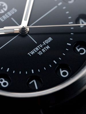 At midday, the dial transitions from 1–12 to 13–24, before reverting again at midnight. The result is a genuine military time experience that adds mechanical intrigue to everyday timekeeping. Full details below...