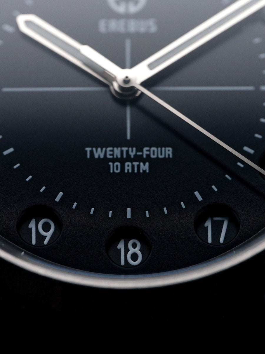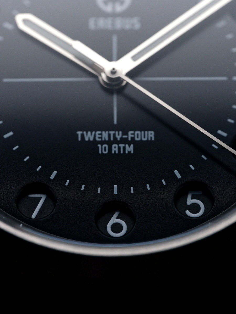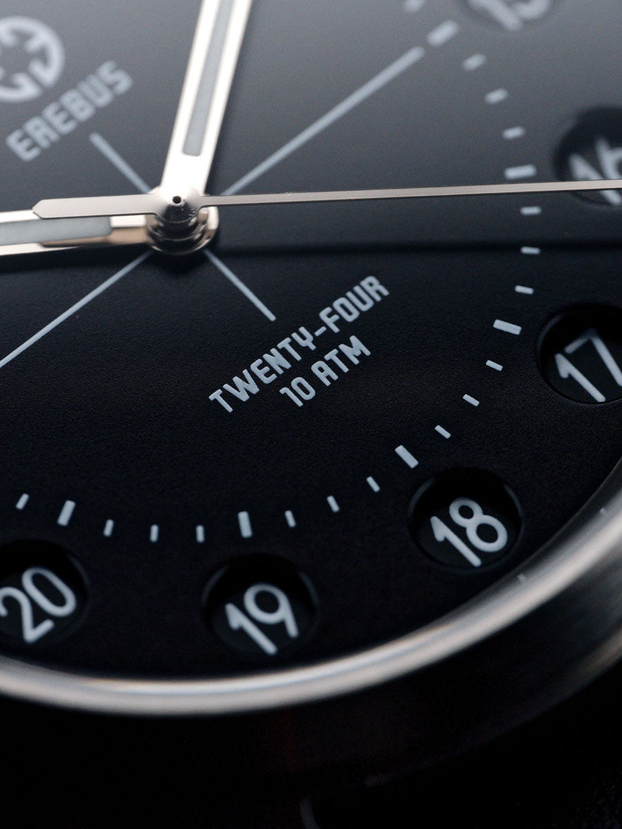 The Erebus Twenty-Four introduces something rarely seen in modern watchmaking; a true 24-hour time display housed within a clean, highly legible field watch design.