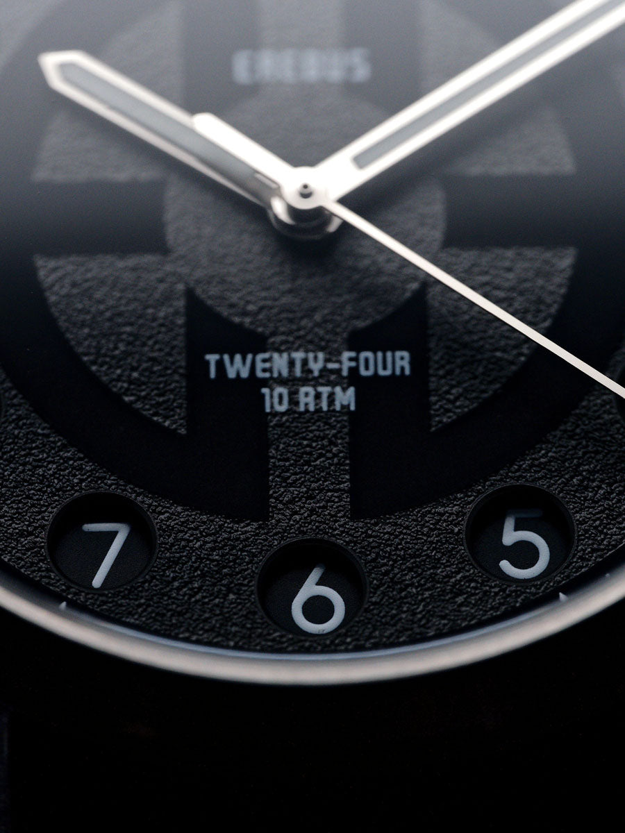 The Erebus Twenty-Four introduces something rarely seen in modern watchmaking; a true 24-hour time display housed within a clean, highly legible field watch design.