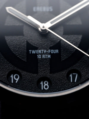 At midday, the dial transitions from 1–12 to 13–24, before reverting again at midnight. The result is a genuine military time experience that adds mechanical intrigue to everyday timekeeping. Full details below...