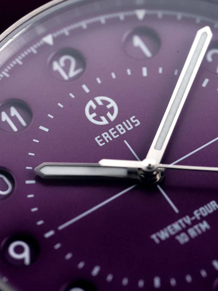 As with every Erebus release, the specifications are uncompromising. A flat sapphire crystal with multi-layer anti-reflective coating ensures exceptional clarity, while BGW9 Super-LumiNova on the hands and markers guarantees legibility after dark.