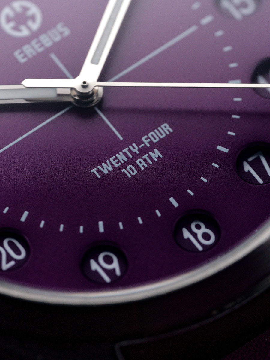 The Erebus Twenty-Four introduces something rarely seen in modern watchmaking; a true 24-hour time display housed within a clean, highly legible field watch design.